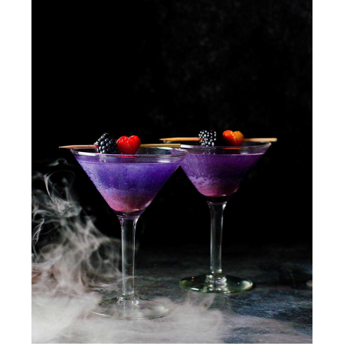A rich blackberry elixir that shimmers with a touch of magic. Vodka and fresh berries create a deep and fruity base while apple liqueur and lemon add a bright spark of acidity. Finished with a trace of sweetness and a glimmer of pearl luster, this potion is smooth, vibrant, and perfectly wicked for a night under the moon.